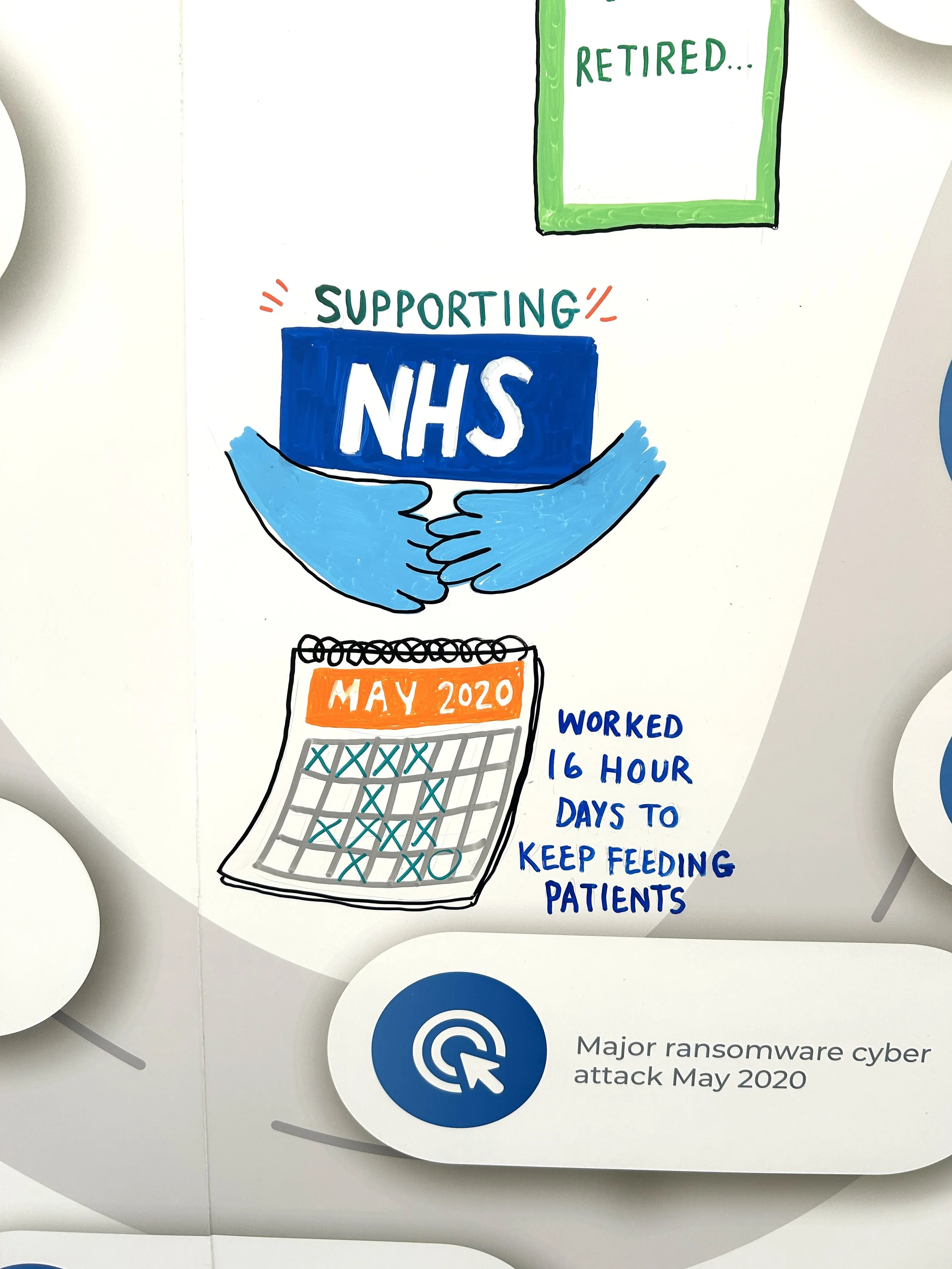 Illustrations across a 7.5m timeline celebrating 25 years of Fresenius Kabi and Calea - capturing key accomplishments, milestones, and staff memories. Live illustrations from notes along the timeline and engagement with the staff and attendees.