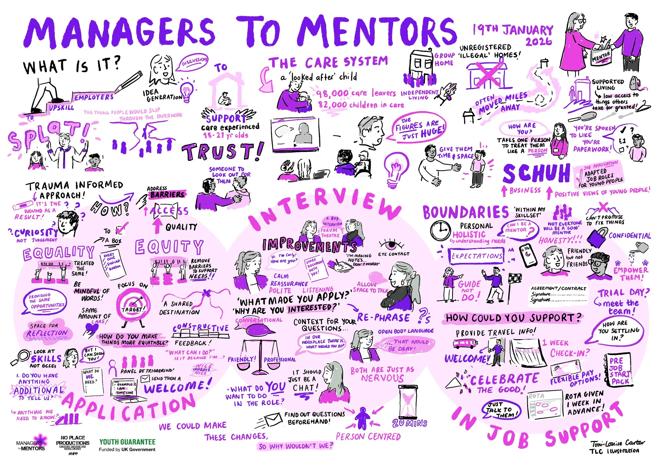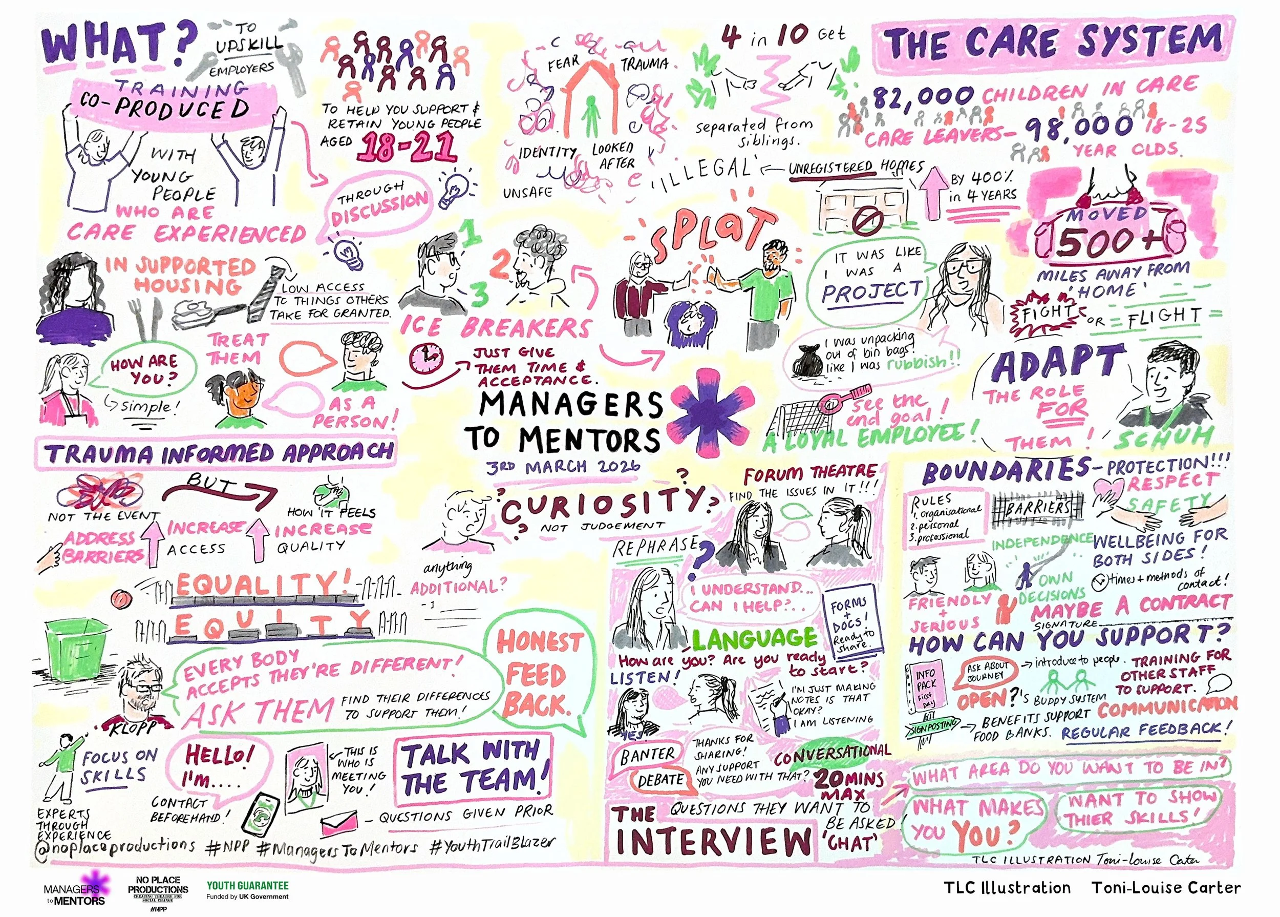 Live visual minutes created at Managers To Mentors training programme run by No Place Productions